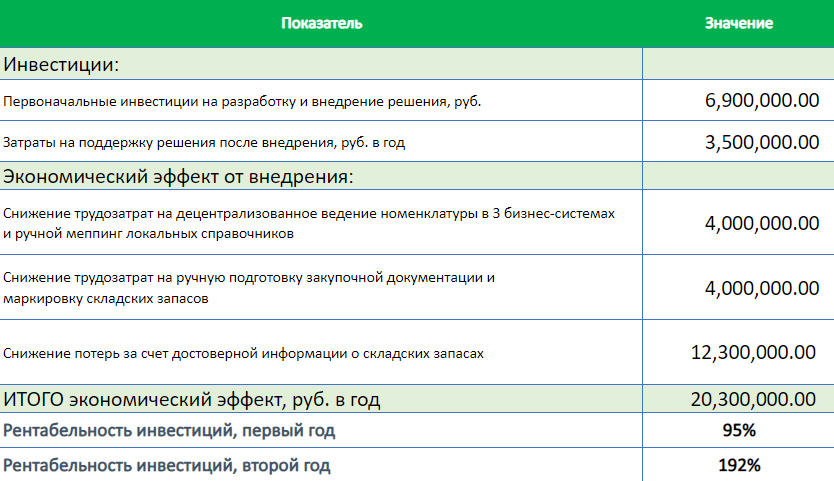 Инвестиции в проект управления НСИ и сроки окупаемости